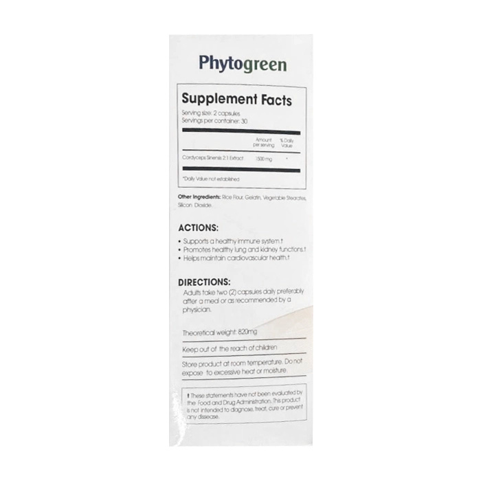 Viên uống Cordyceps 1500mg Phytogreen hỗ trợ tăng cường sức khỏe 60 viên