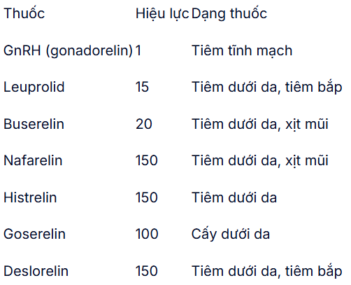 - Goserelin cấy dưới da 3,6 mg cách nhau 4 tuần trong 6 tháng liên tiếp.