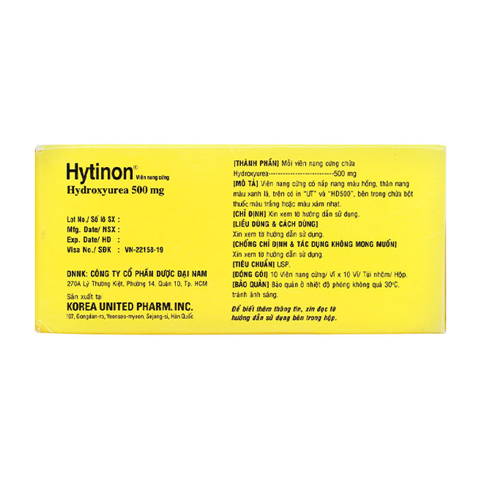 Thuốc Hytinon 500mg điều trị bệnh bạch cầu mạn tính dòng tủy. Kết hợp với xạ trị để điều trị ung thư cổ tử cung.