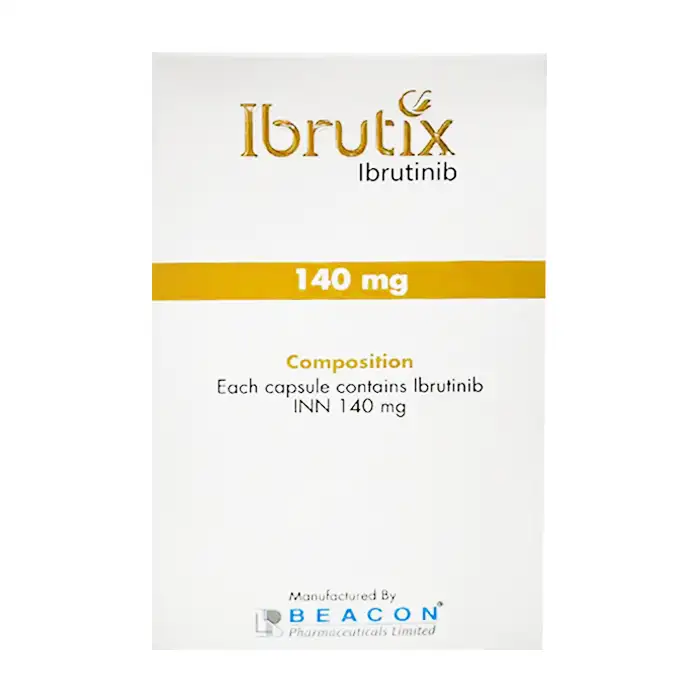 Thuốc Ibrutix 140mg Beacon có chứa hoạt chất Ibrutinib dùng trong điều trị cho bệnh nhân người lớn bị u lympho tế bào vỏ, bệnh bạch cầu mạn tính dòng lympho, tăng macroglobulin huyết theo chỉ định của bác sĩ.