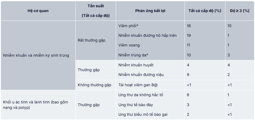 Phản ứng bất lợi của thuốc được báo cáo trong các nghiễn cứu lâm sàng hoặc nghiên cứu hậu mại ở bệnh nhân u ác tính tế bào B+