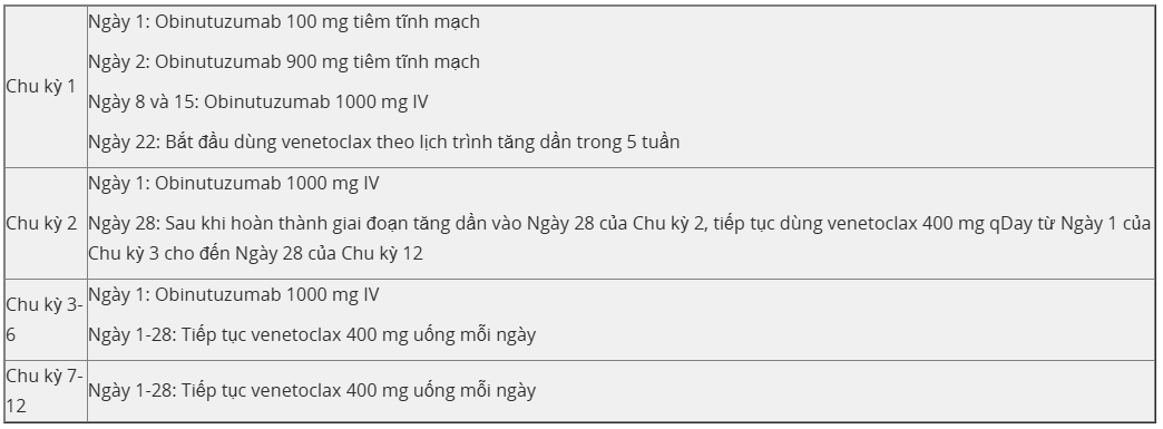 Liều dùng khuyến cáo chỉ định điều trị bệnh bạch cầu lymphocytic mãn tính hoặc u lympho lymphocytic nhỏ, trong những liệu pháp cụ thể gồm: